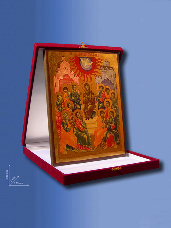 Icona russa del xix sec. L'icona viene consegnata in elegante cofanetto blu con interno in raso completa di certificato di origine.. L'icona della pentecoste, invece, mostra la realizzazione di questa preghiera:
